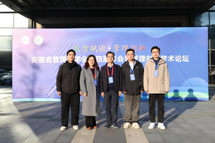 本网讯 近日,由安徽省管理学学会主办、阜阳师范大学商学院承办的安徽省管理学学会第四届年会暨管理创新学术论坛于阜阳召开,年会主题为“数智赋能与管理创新”。经济与管理学院院长彭志胜教授、工程管理系主任杨苏教授带领4位研究生参会。