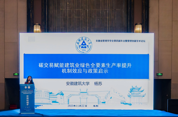 杨苏在会议学术分论坛作了题为《碳交易赋能建筑业绿色全要素生产率提升的机制效应与政策启示》的报告,阐述了碳交易政策对建筑业绿色转型的影响机理,为推动建筑业绿色化、工业化、智能化发展,培育建筑业新质生产力提供了理论参考与实践路径。