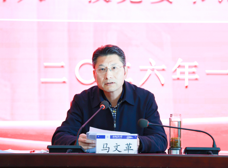 本网讯 1月14日下午,校党委书记马文革在紫云路校区徽风楼二楼报告厅为师生员工宣讲党的二十届四中全会精神,机关党委所属各单位全体工作人员、马克思主义学院全体教师、辅导员代表、校院两级学生组织骨干、离退休老同志代表等三百多人现场聆听宣讲报告。报告会由校党委副书记、校长蔡国军主持。