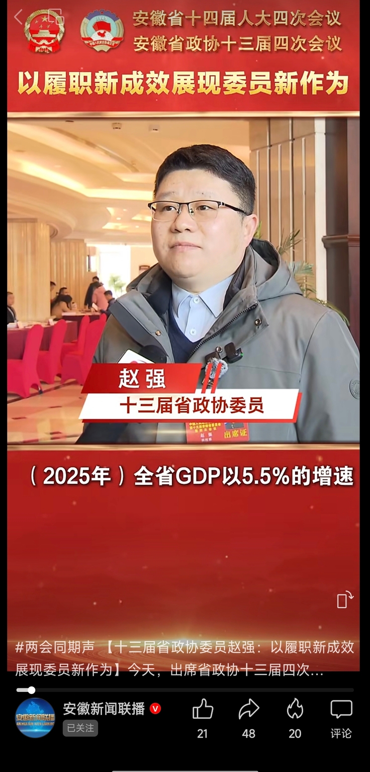 安徽新闻联播:两会同期声:【十三届省政协委员赵强:以履职新成效展现委员新作为】