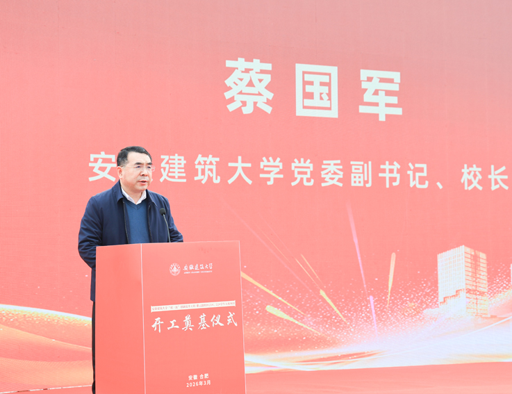 本网讯 3月20日上午,安徽建筑大学“双一流”创新提升工程重点项目—21#、22#学生公寓开工奠基仪式在紫云路校区隆重举行。学校领导马文革、蔡国军、李早、杨科、高跃峰,有关职能部门负责人、师生代表,施工总承包、监理、质量检测、设计等单位负责人、施工班组人员共同见证这一事关学校发展、惠及全体师生的重要时刻。校党委副书记、校长蔡国军主持奠基仪式。