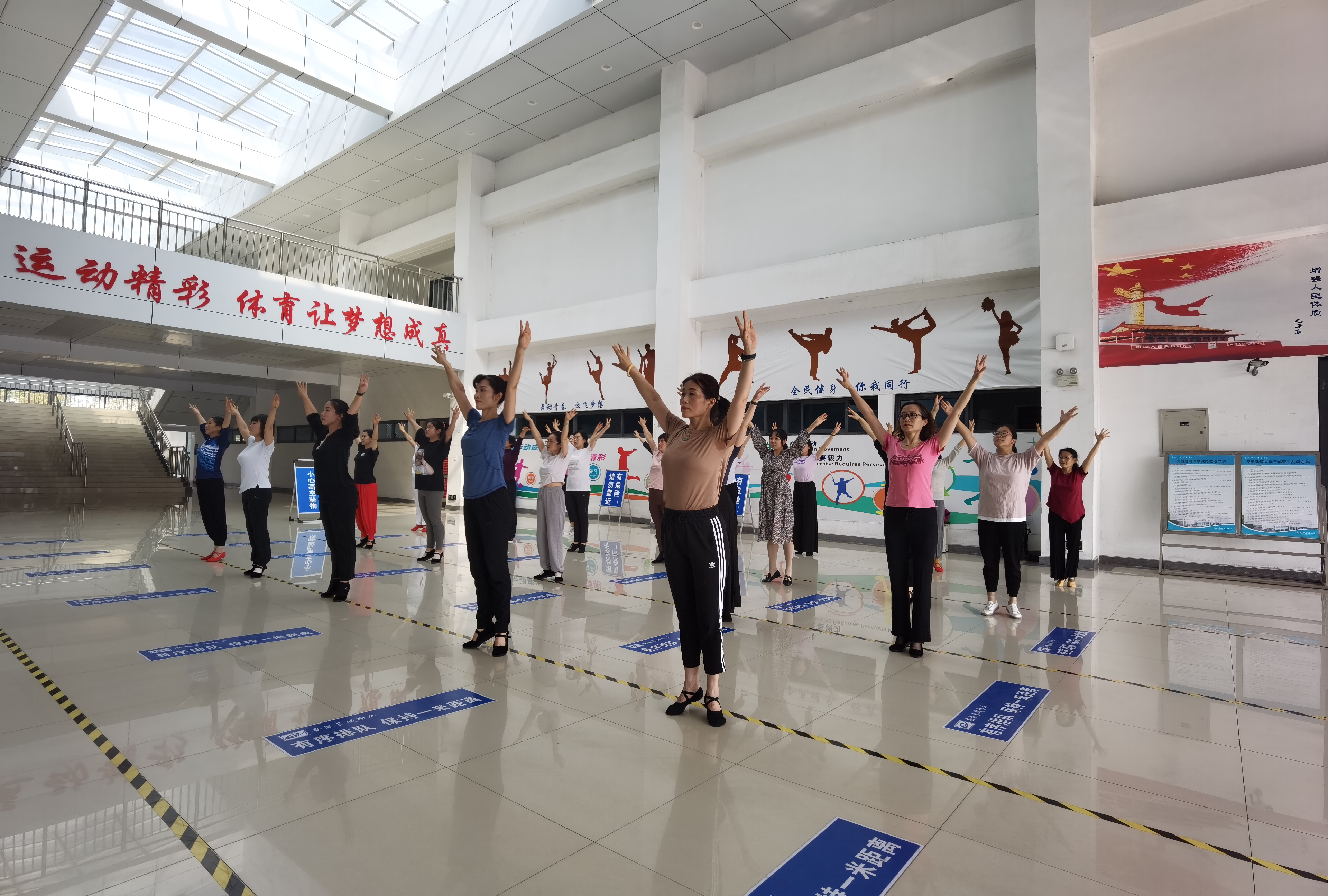 为保证各类文体课的顺利开展,校工会购置了器材,聘请了专业教练。每周周三、周四、周五,很多教师利用午休时间,来到体育馆参加自己喜爱的活动项目,在音乐中翩翩起舞,放声高歌,舒展筋骨。通过参加这些活动,大家放松心情,强健体魄,磨练毅力,促进交流,增进友谊,收获健康和快乐!