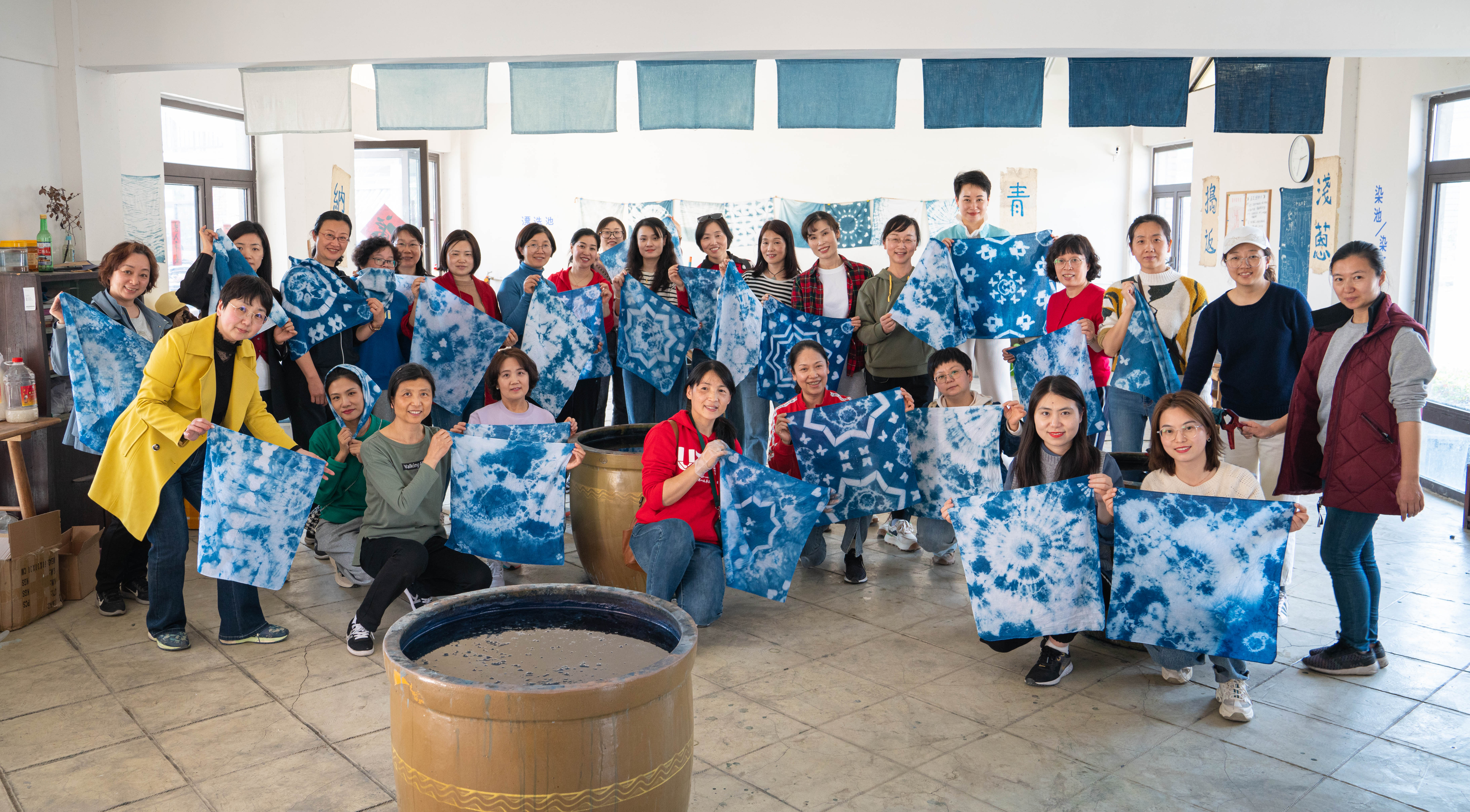 “草木有情知春秋,十里香风思良俦”,着草木之色,使衣服换发新的生机,是中华传承千年的生活智慧。在马郢,老师们体验了草木染,收获了一条自己设计制作的蓝染手帕。大家在身心合一的劳作中,唤醒了内心那些微小又难以表达的幸福感。