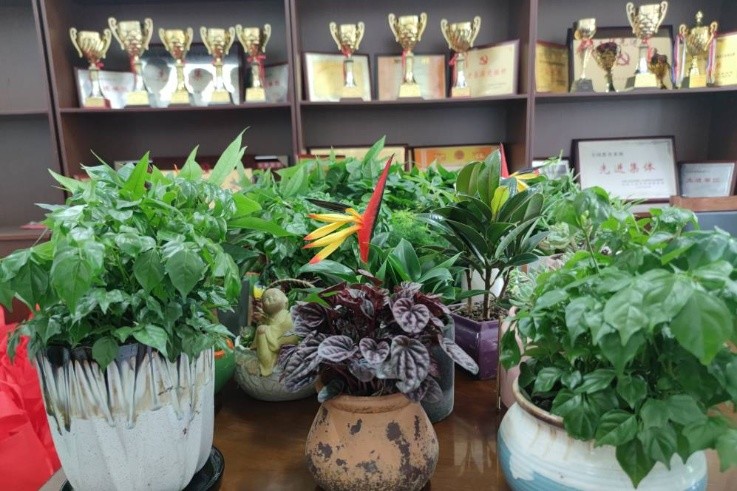 材化学院分工会为教职工精心挑选了虎皮兰、白掌、发财树、金鱼花、仙人掌、多肉、文竹等精美绿植。刚刚结束上课的老师们,认真挑选中意的绿植。不仅缓解了工作的疲劳,也改善了办公室的工作环境。