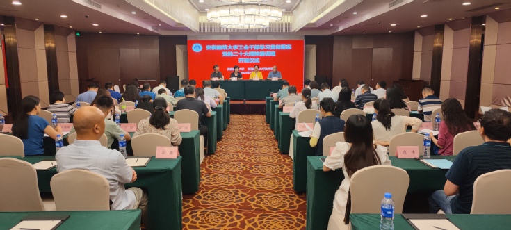 本网讯 在学校深入开展学习贯彻习近平新时代中国特色社会主义思想主题教育之际,为进一步提升我校工会干部政治理论素养、业务水平和履职能力,7月12-14日,学校在芜湖工会干部培训基地--安徽师范大学法学院举办2023年度工会干部培训。校党委常委、副校长李早出席开班仪式,学校五届工会委员会委员、女工委员会委员、各分工会主席及全校专兼职工会干部近50人参加培训。