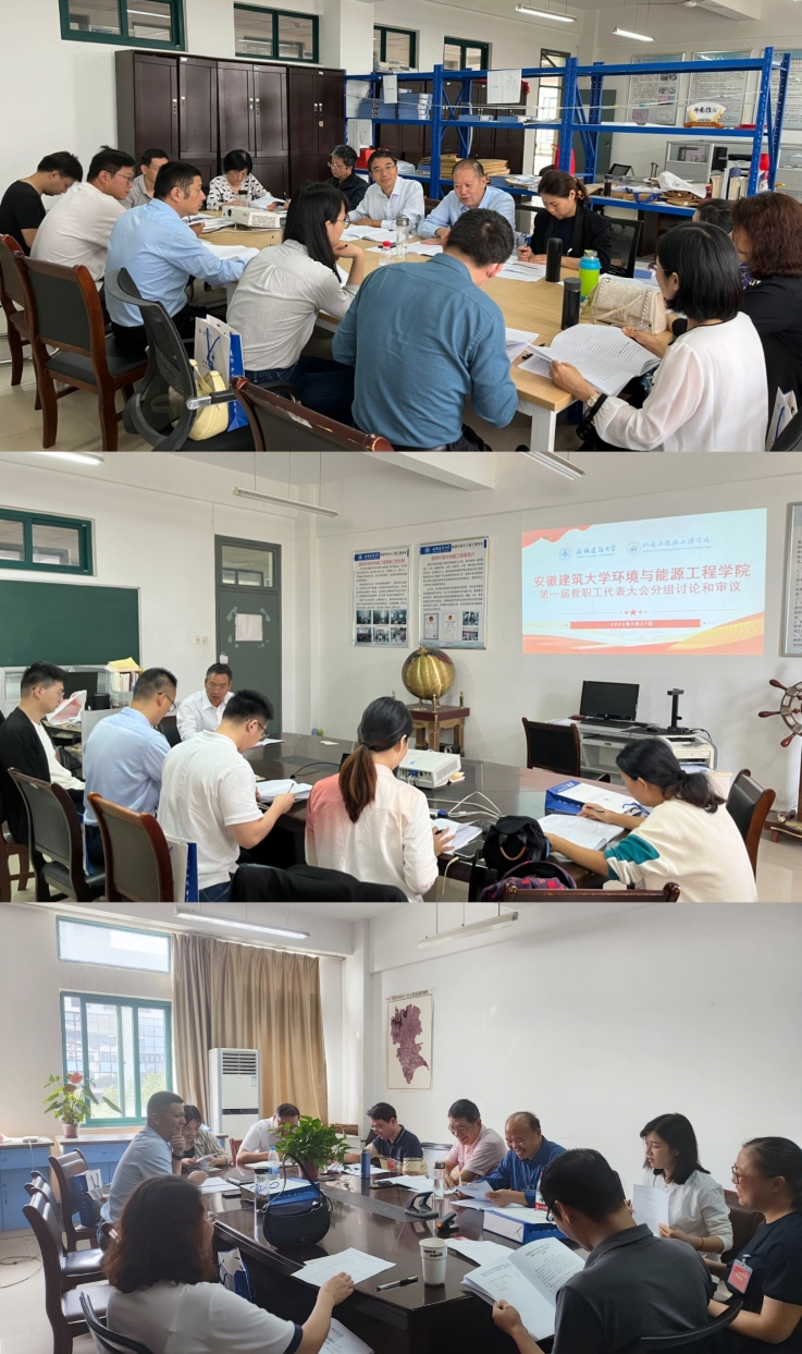 在接下来的分组讨论和审议环节,与会五个代表团对《学院工会工作报告》、《学院工作报告》、《安徽建筑大学环境与能源工程学院教职工代表大会实施细则(草案)》、《环境与能源工程学院第一届教职工代表大会执行委员会选举办法(草案)》进行审议,并就执委会委员候选人、总监票人、监票人、计票人的建议名单进行讨论。代表们以饱满的热情、严肃的态度和强烈的主人翁意识,履行自己的职责,认真审议大会文件,献计献策,群策群力。