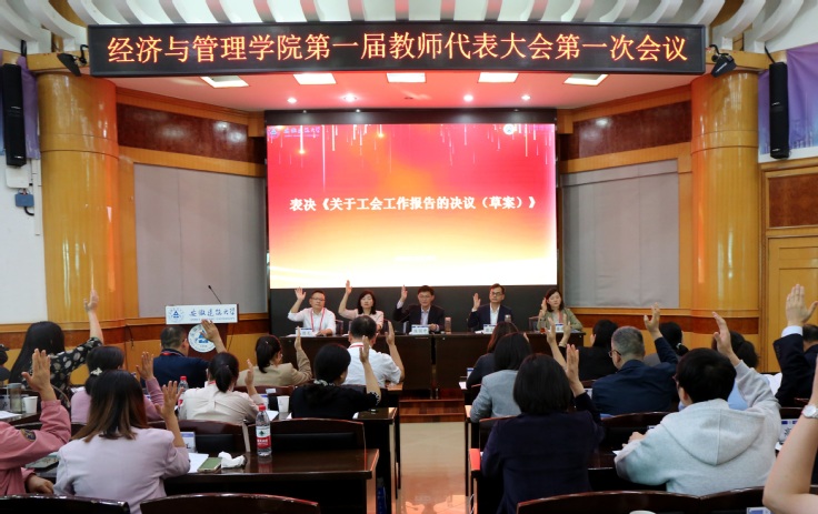 大会第二次全体会议上,与会代表表决通过了《关于学院工作报告的决议(草案)》《关于工会工作报告的决议(草案)》《经济与管理学院第一届教职工代表大会执行委员会选举办法(草案)》及总监票人、监票人、计票人建议名单,选举产生了学院第一届教职工代表大会执委会委员。