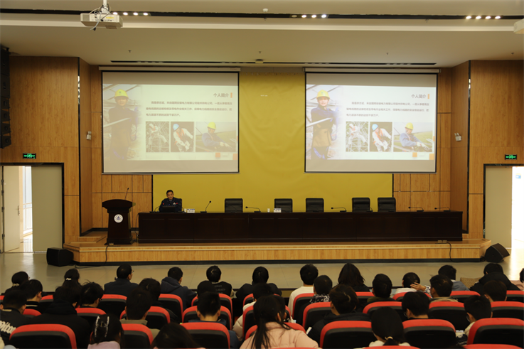 廖志斌结合从业二十多年来的奋斗之路、奉献之路,从学好本领、服务社会,忠诚岗位、专业专注,相信自己、坚持不懈,学习创新、不断进步四个方面,与同学们分享他在个人成长路上的点点滴滴和抓住新时代发展机遇迎难而上的勇气。当谈到自己带领团队攻克一个个技术难题,出色完成一次次艰难任务时,他禁不住绽放出自豪的笑容。他认为岗位大都很平凡,工作也很平凡,只要肯钻肯干坚持付出,坚持把平凡的工作、简单的小事做好,做精,做到极致,就一定能出成效出成绩,这就是劳模精神、工匠精神的一种具体体现。最后,廖志斌引用习近平总书记对广大青年的寄语,希望广大青年学生要坚定理想信念,树立远大的志向,勤于学习、善于学习,做一个持之以恒、脚踏实地、不懈努力的人,做最好的自己,努力为党和人民的事业贡献自己的力量。