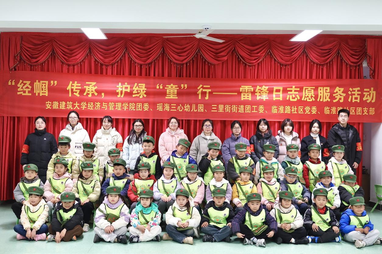 经济与管理学院"菁琯"青年志愿者服务队15名队员走进合肥瑶海三心幼儿园,通过"故事讲述+仪式教育+劳动实践"三位一体模式,为30余名学龄前儿童带来沉浸式雷锋精神教育体验。(作者:余大纬 一审:帅英 二审:陈国中)