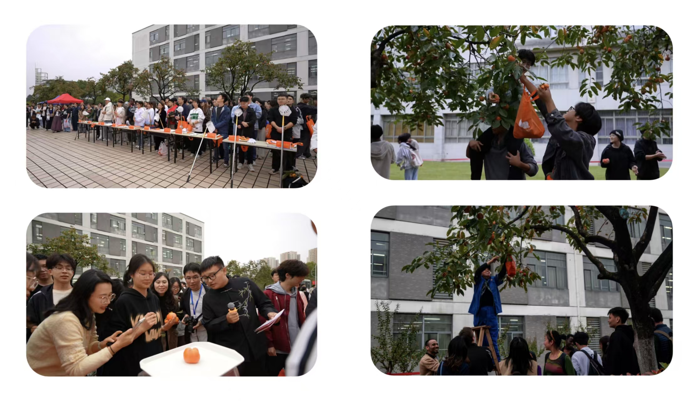 本届柿子文化活动月设计了柿子采摘、创意文创设计展、柿子王评比、主题摄影比赛、重阳敬老等多项主题活动,不仅让师生亲身感受劳动快乐、品尝收获满足,更进一步弘扬与传承了建大的文化基因,让校园文化持续焕发新的活力。