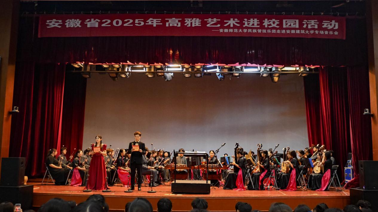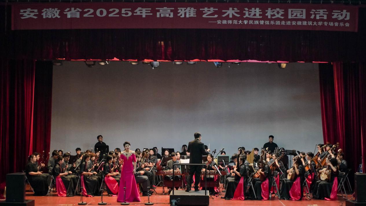 这次安徽师范大学民族管弦乐团带来的高雅艺术进校园演出,让现场观众零距离感受民族乐独特魅力,在丰富校园文化的同时,也让在场师生接受了一次深刻的爱国主义教育。