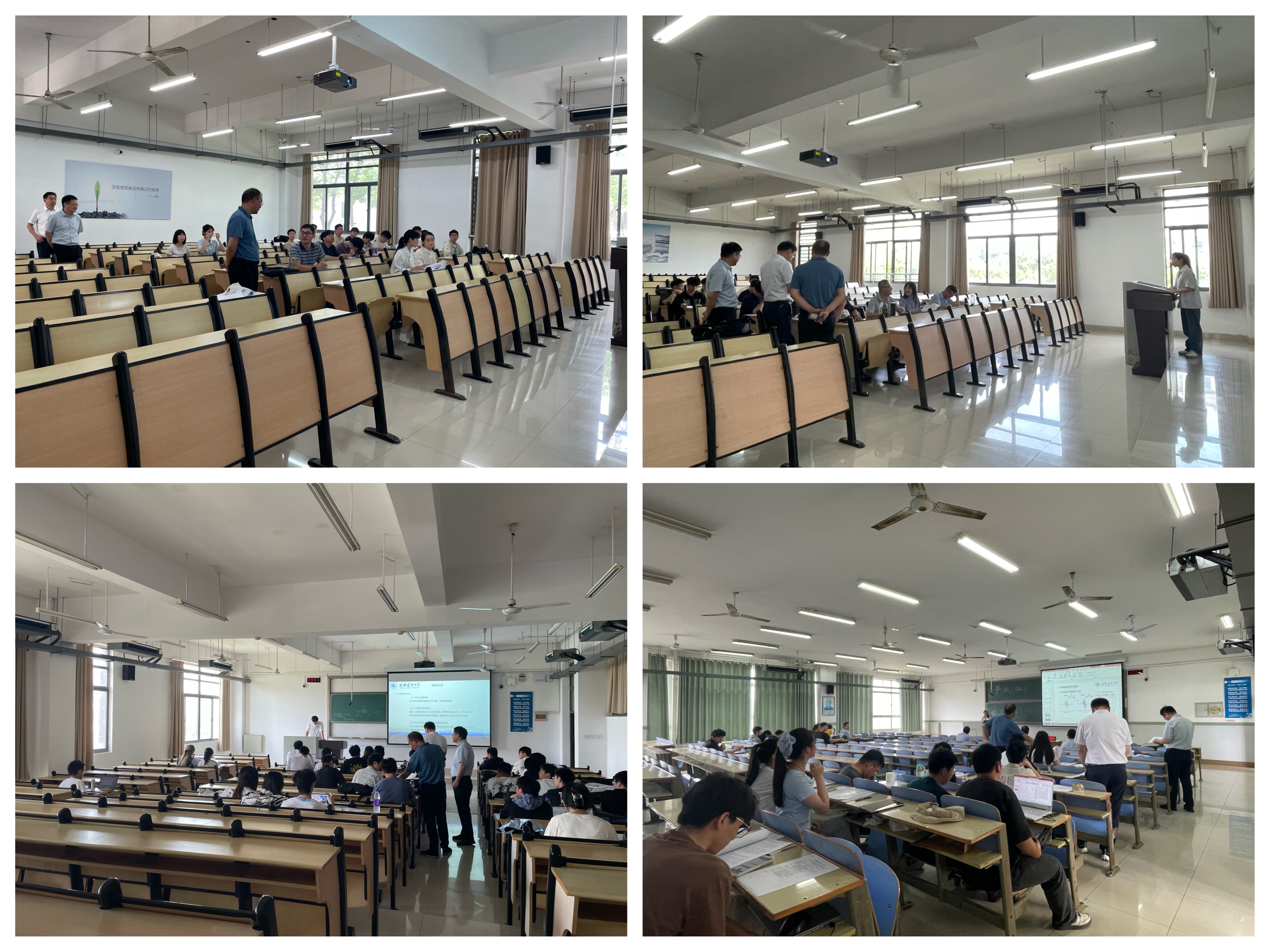 答辩现场,学院领导班子成员深入各个答辩教室查看学生答辩情况。答辩过程主要分为学生自述与评委提问两个环节。在汇报环节,同学们围绕自身研究方向,系统阐述研究背景、目标意义、实验方法及成果。评委提问环节,答辩老师针对学生的汇报内容提出具有针对性的问题,指出论文格式、专业术语、研究方法等方面存在的不足,整个答辩过程规范有序、学术氛围浓厚。