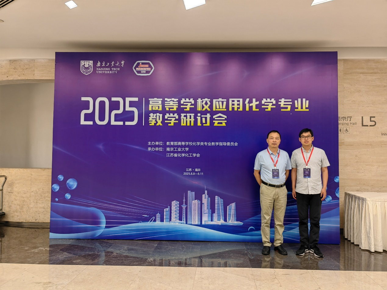 本网讯 8月8日至11日,由教育部高等学校化学类专业教学指导委员会主办、南京工业大学与江苏省化学化工学会联合承办的“2025年高等学校应用化学专业教学研讨会”在南京顺利召开。材料与化学工程学院应用化学系赵东林、方霄龙两位教师受邀参会,与来自全国各高校的专家学者齐聚一堂,共同探讨应用化学专业教学发展的新思路与新路径。