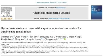 针对锌金属负极面临的枝晶生长和界面副反应等关键问题,采用电解液工程策略,提出了动态界面调控方法和捕捉-沉积机制,有效缓解了锌金属负极的枝晶生长和副反应问题,为开发高能量密度、长循环寿命的水系锌离子电池提供了理论基础。相关工作以安徽建筑大学为第一单位分别发表于国际知名期刊《Journal of Power Sources》(中科院二区)和《Chemical Engineering Journal》(中科院一区)。