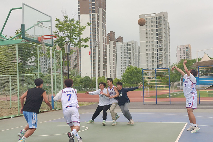 本网讯 凌云赛场,斗志昂扬。为增强学院学生身体素质,提高班级集体凝聚力,电信学院举办了“电信杯”篮球比赛,此次比赛以专业班级为单位进行组队,共有12支队伍报名参赛。