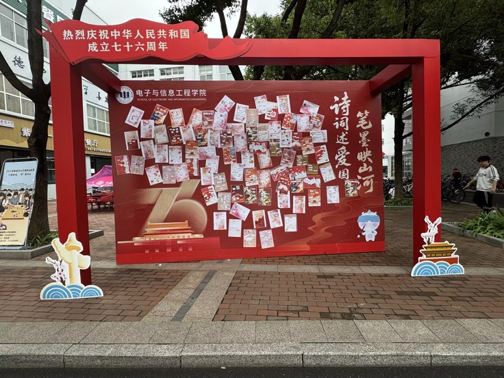 本网讯 为庆祝中华人民共和国成立76周年,纪念中国人民抗日战争暨世界反法西斯战争胜利80周年,在厚植师生爱国情怀的同时扩大中华优秀传统文化的影响力,9月29日至30日,电子与信息工程学院团委组织开展了“诗词述爱国・笔墨映山河”庆国庆中秋主题活动。值得一提的是,活动不仅吸引了全校师生踊跃参与,更迎来多位留学生的身影,中外学子以诗词为桥、以笔墨为媒,共话家国情怀,同赏中华文化魅力。