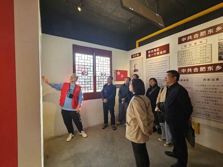 东乡支部展陈中心作为合肥市重要红色教育基地,系统展现了皖中地区早期党团组织的创建历程与革命先辈的奋斗史诗。在讲解员引导下,教师党员们依次参观了“肥东第一面党旗升起地”“农民运动兴起”“抗日救亡宣传”等主题展区,通过泛黄的历史照片、珍贵的革命文物和详实的文献资料,沉浸式感悟了1926年中共合肥东乡支部成立以来,共产党人在江淮大地播撒革命火种、带领群众奋勇抗争的峥嵘岁月。大家纷纷表示,东乡支部作为皖中地区最早的党组织之一,其坚韧不拔的斗争精神和一心为民的革命情怀,为新时代教育工作者提供了宝贵的精神滋养。