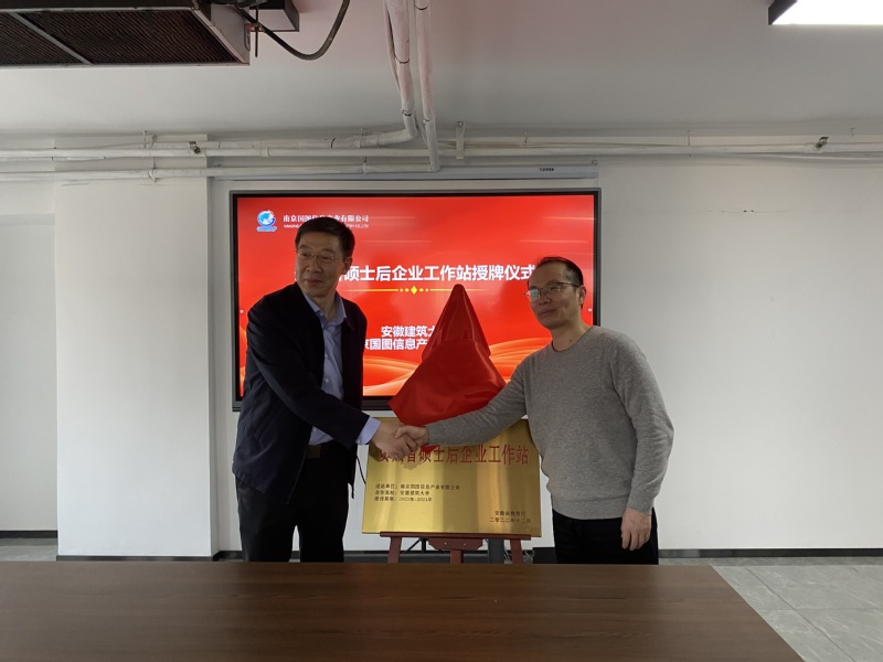 本网讯 3月9日,公管学院与南京国图信息产业有限公司举行了“安徽省硕士后企业工作站”揭牌仪式。南京国图信息产业有限公司副总裁顾余庆、超图软件华东运营总监姜春韵、国图信息资源与规划设计院合肥分院院长吕定基以及我校研究生院院长朱达荣,公管学院院长黄佳豪、副院长王秉义、连瑞瑞等相关人员参加了活动。