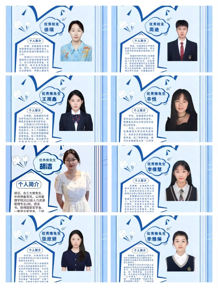 活动第三阶段,优秀校友及2026届硕士研究生推免同学结合自身经历分享经验。土地资源管理专业邀请本专业优秀本科生张欣妍,分享学习生活经历与保研心得;城市管理专业邀请优秀校友周迪、徐瑞、李倩慧,分享专业课学习、考公考研经验,叮嘱新生珍惜大学时光;劳动与社会保障专业邀请22级优秀推免生李雅琳,从方向选择、课程学习、实践积累、心态调整四方面,分享学业规划与推免经验;人力资源管理专业邀请22级推免至合肥工业大学的胡洁同学,分享高效学习、科研竞赛参与及大学生涯规划的成长心得;法学专业邀请22级推免生王雨鑫、辛悦同学,讲解保研准备、学业积累要点与推免流程,传递正能量。