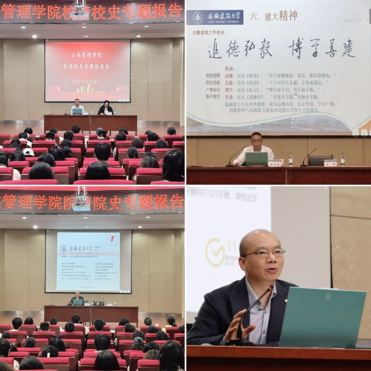 深悟校史院情、凝聚爱校共识。为进一步增强新生爱校荣校意识,加深其对学校及学院发展历程的理解,学院特开展“校情校史、院情院史”专题教育活动。活动中,校党委常委、宣传部部长徐庚阳从创办背景、发展历程、办学成就、精神传承四大维度,系统梳理1958年建校以来的重要发展阶段,为新生栩栩如生地铺展开一幅立体鲜活的学校发展画卷,同时鼓励新生坚定理想信念、明确责任使命,将爱校荣校意识内化于心、外化于行,争做优秀的新时代建大青年;学院院长则聚焦学院发展,既回溯了初创时期的艰辛探索,细数学科体系从雏形到完善的迭代历程,展现学院在学科建设、人才培养领域的深厚积淀与稳步提升的育人质量,还在现场耐心解答了新生未来学习成长中可能面临的学业压力、方向选择、实践衔接等困惑,给出切实可行的解决思路。此次专题教育活动让在场新生深刻体会到学校与学院一脉相承的育人理念,以及浓厚的人文关怀,进一步筑牢了爱校荣校的思想根基。