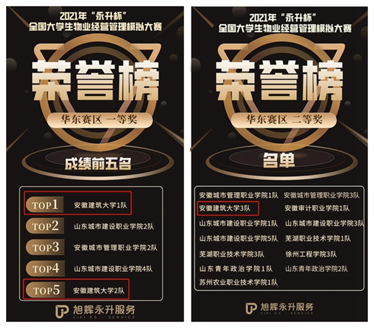 本网讯 10月17日,2021年“永升杯”全国大学生物业经营管理模拟大赛区域晋级赛(华东赛区)落幕,华东赛区共有来自12所高校的32支队伍参赛。在学院李守荣老师精心指导下,朱海祥、周亿伟、胡郑等组建的三支团队代表学校首次参赛,获得一等奖2项、二等奖1项,首次参赛即取得佳绩。