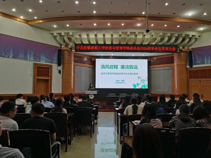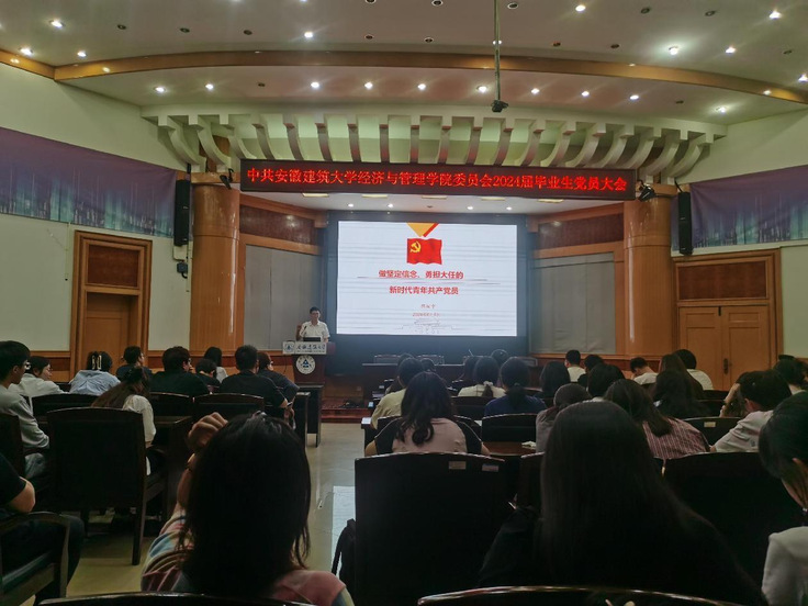 本网讯 为进一步加强毕业生党员教育和管理,激励毕业生党员发挥好先锋模范作用,6月5日,经管学院党委在建树楼三楼报告厅召开2024届毕业生党员大会暨“最后一次党课”主题党日活动,学院党委书记陈国中、党委副书记帅英、党委组织员高德龙担任主讲,2024届全体毕业生党员参加活动。
