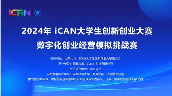 本网讯 6月16日,2024年iCAN大学生创新创业大赛(数字化创业经营模拟挑战赛道)安徽省赛顺利落下帷幕。本次大赛由山东大学与iCAN大赛组委会共同主办,北京大学担任学术指导,安徽建筑大学联合巢湖学院、安徽新华学院承办,全国虚拟仿真创新联盟经济与管理专业委员会协办,江苏一鼎堂软件科技有限公司提供技术服务,大赛以网络云端竞赛方式举行。全省共有来自合肥工业大学、安徽大学、安徽财经大学等省内23所本科高校119支队伍近六百名师生参加。