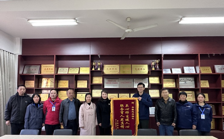 本网讯 为了表达对后勤工作人员长期温情付出、贴心服务的感谢,做好育人服务的提质增效。11月28日,经济与管理学院在金寨路校区建树楼305会议室开展赠授锦旗仪式。经管学院党委书记陈国中、安徽远成物业及后勤管理处相关工作人员出席了此次活动。