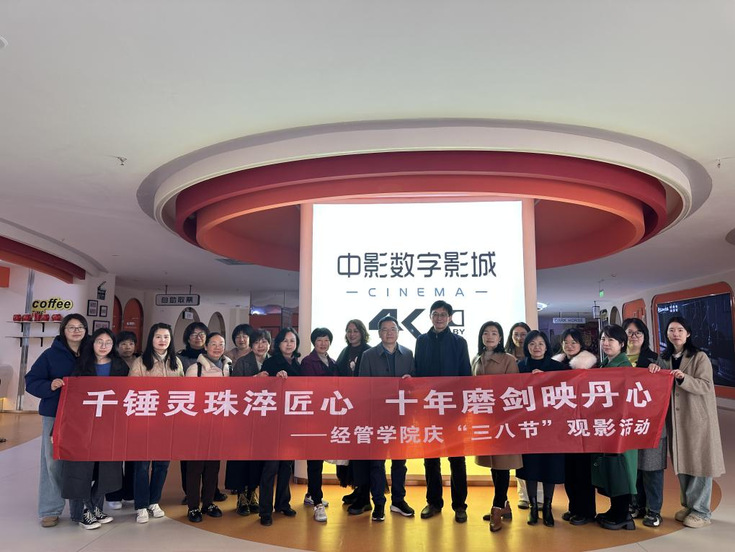 本网讯 新绿初绽,春和景明。为庆祝第115个“三八”国际妇女节,丰富女教工精神文化生活,凝聚巾帼力量,3月7日,经管学院举办“千锤灵珠淬匠心,十年磨剑映丹心”庆“三八节”观影活动,学院女教工集体观看电影《哪吒之魔童闹海》。