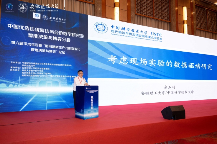 安徽理工大学党委副书记、常务副校长余玉刚教授以《考虑现场试验的数智驱动研究》为题做大会报告,他表示数智驱动的管理学研究范式已演变为“AI技术融合统计学法与优化模型,并结合企业实际案例”的三维架构。报告聚焦现场实验视角,探究数智技术在跨境电商业态与智慧物流平台等领域的创新应用。