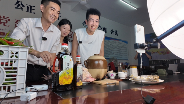 线上直播作为宣传乡村文化、助力特色产品走向千家万户的有效手段,在此次活动中发挥了重要作用。实践团分工明确,有“菁琯青年”宣讲团成员、有专注乡村振兴的“云上乡村”学生双创团队成员等。在舒城绿健山茶油专业合作社党支部书记谢高平的指导下,大家围绕直播带货事宜进行了全面细致的规划,从产品选品定价,到直播技巧传授、注意事项提醒,每一个环节都精心筹备。随后,在汤池村党群活动中心会议室,实践团开启了直播带货之旅。