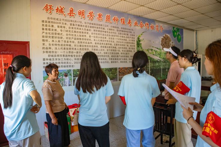 本网讯 为深入贯彻落实习近平总书记关于“三农”工作的重要论述,积极响应乡村振兴战略部署,扎实推进青年学子助力乡村振兴行动,7月4日至5日,经管学院“青春知行,菁琯助农”综合服务实践团14名师生走进舒城县汤池村、油坊村、三江村,通过爱心捐赠、专题座谈、调研走访、直播带货、思政宣讲等一系列活动,深度参与乡村振兴建设,为乡村发展注入青春动能与数智活力。