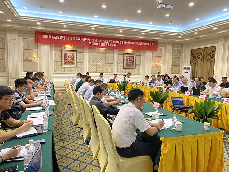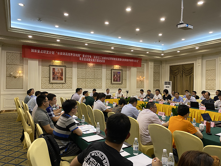 本网讯 2020年6月21日,我校作为课题承担单位参加的国家重点研发计划——“水资源高效开发利用”重点专项“高新区工业废水近零排放及资源化利用技术研究与示范” 项目启动暨实施方案论证会在安庆召开。安庆市委常委、副市长花家红,安徽省科技厅副厅长李国阳到会并致辞,科技部社发司、中国21世纪议程管理中心领导通过视频方式参会并讲话,副校长蔡新立作为课题“工业废水近零排放与资源化利用政策体系”负责人带领课题组成员出席会议并讲话。