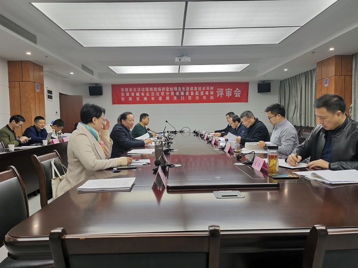 本网讯11月27日,安徽省城市市容环境卫生协会在合肥组织召开了《安徽省生活垃圾填埋场存量处理及生态修复技术导则》、《安徽省城市生活垃圾分类设施设备配置导则》、《安徽省城市道路清扫保洁导则》(以下简称“三个导则”)专家评审会。安徽省住房城乡建设厅、华中科技大学、住房城乡建设部环境卫生工程技术研究中心、安徽理工大学、合肥学院、合肥市城市管理局、安徽建筑大学、安徽通源环境节能股份有限公司、劲旅环境科技股份有限公司、安徽华信电动科技股份有限公司等单位领导、专家和代表共20余人,及环能学院部分技术骨干参加了本次会议。