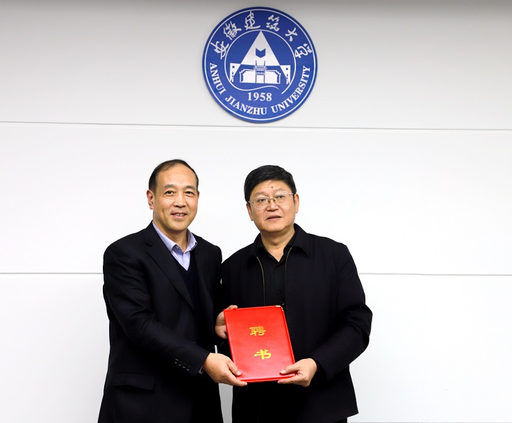 会后,聘任仪式在实验综合楼的第三会议室举行,合肥供水集团有限公司吴正亚一行、校党委书记方潜生、副校长黄显怀及环能学院党政领导与部分老师出席了本次仪式。聘任仪式由黄显怀副校长主持。聘任仪式上,方潜生书记首先对吴正亚加盟安徽建筑大学表示欢迎。随后,方书记简要介绍了我校的历史与目前的发展情况,并就合作意向与吴正亚进行了亲切的交谈。吴正亚表示对受聘为我校客座教授一职感到非常荣幸,并对双方未来的进一步合作做出了期许和展望。之后,方潜生书记宣读了聘任吴正亚为我校客座教授的聘任文件,并为吴正亚颁发了聘书。(文/图:黄静 刘瑾;审稿:朱曙光)