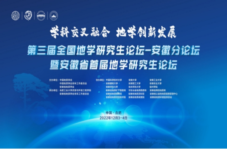 本网讯 12月3日至4日,第三届全国地学研究生论坛-安徽分论坛暨安徽省首届地学研究生论坛在合肥工业大学成功举办。会议由中国地质学会、中国地质学会青年工作委员会、安徽省地质学会主办,合肥工业大学、安徽省地质学会青年工作委员会承办,中国科学技术大学、安徽大学、安徽建筑大学等省内10所高校共同协办。环能学院相关专业师生线上参加了此次学术会议。