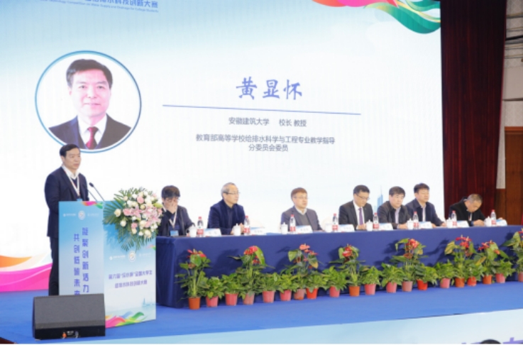 本网讯 3月24至25日,第六届“深水杯”全国大学生给排水科技创新大赛在我校顺利举行。此次大赛以“凝聚创新活力,共创低碳未来”为主题,由全国大学生给排水科技创新大赛组委会主办,深圳市环境水务集团有限公司和安徽建筑大学联合承办。校党委副书记、校长黄显怀教授,校党委常委、副校长闵杰教授,教育部高等学校给排水科学与工程专业教学指导分委员会主任委员、哈尔滨工业大学李伟光教授,副主任委员、重庆大学张智教授,深圳市环境水务集团有限公司董事长吴晖、深圳市环境水务集团有限公司总工程师张金松,全国勘察设计大师中国建筑设计研究院有限公司赵锂副总经理及山东建筑大学邱立平副校长等相关领导出席本次大赛。全国各地近600名高校师生现场参加了比赛,近万名高校师生及给排水相关企业同仁在线同步观看直播。