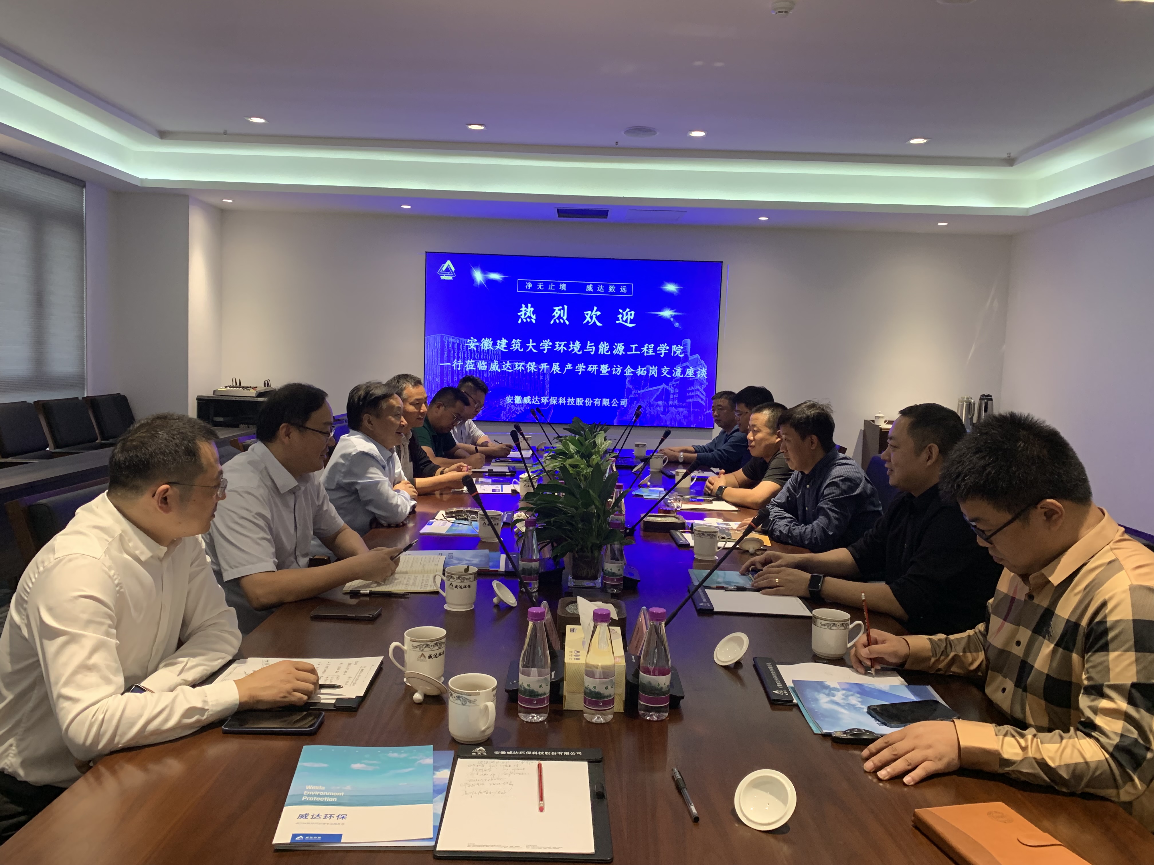 安徽威达环保科技股份有限公司公司董事长解彬,公司总经理校友何向成等公司领导和校友代表热情接待了环能学院一行。解彬介绍了公司的发展历程、主要业务、工程实绩、人才需求和校友在企工作表现等情况。解彬表示,企业做大、变强关键在人才,安徽建筑大学毕业生基础扎实、实践能力强,在行业内口碑很好,热烈欢迎学校毕业生到企业大展宏图。戴前宏对企业的热情接待表示感谢,详细介绍了学院的办学特色、学科建设、人才培养、社会服务等情况,并指出双方在专业领域上有很高的契合度,希望双方强化校企合作,进一步拓展合作空间,细化合作内容,在就业实习、技术合作和产学研项目等方面充分发挥各自优势,实现合作共赢的良好局面。会上,双方围绕就业实习基地建设、项目申报、党建共建等进行了深入交流、探讨。
