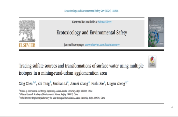 本网讯 近日,我校环境与能源工程学院陈星老师与安徽大学和中国环境科学研究院合作,在环境与生态学领域知名期刊《Ecotoxicology and Environmental Safety》(JCR 1区,影响因子6.8)在线发表了题为“Tracing sulfate sources and transformations of surface water using multiple isotopes in a mining-rural-urban agglomeration area”的论文,安徽建筑大学为论文第一完成单位。