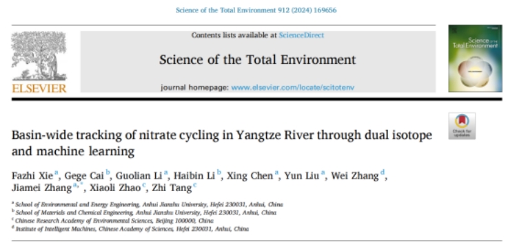 本网讯 近日,我校环境与能源工程学院谢发之课题组在环境领域权威期刊《Science of the Total Environment》(中科院1区,2023年影响因子9.8)在线发表了题为“Basin-wide tracking of nitrate cycling in Yangtze River through dual isotope and machine learning”的科研论文,安徽建筑大学为第一完成单位和通讯单位。该研究得到国家重点研发计划项目(No. 2021YFC3201005),国家自然科学基金项目(No. 42277075,42102204)的资助。