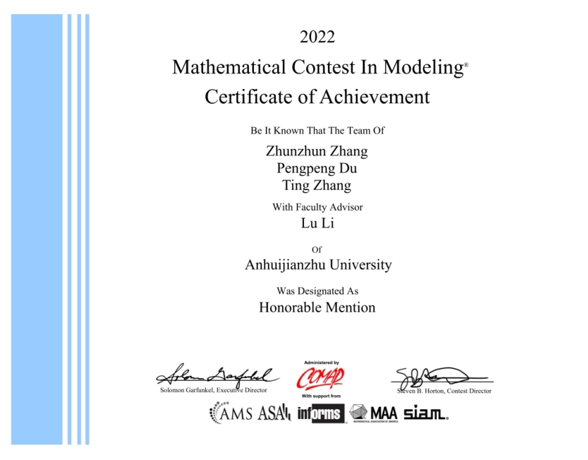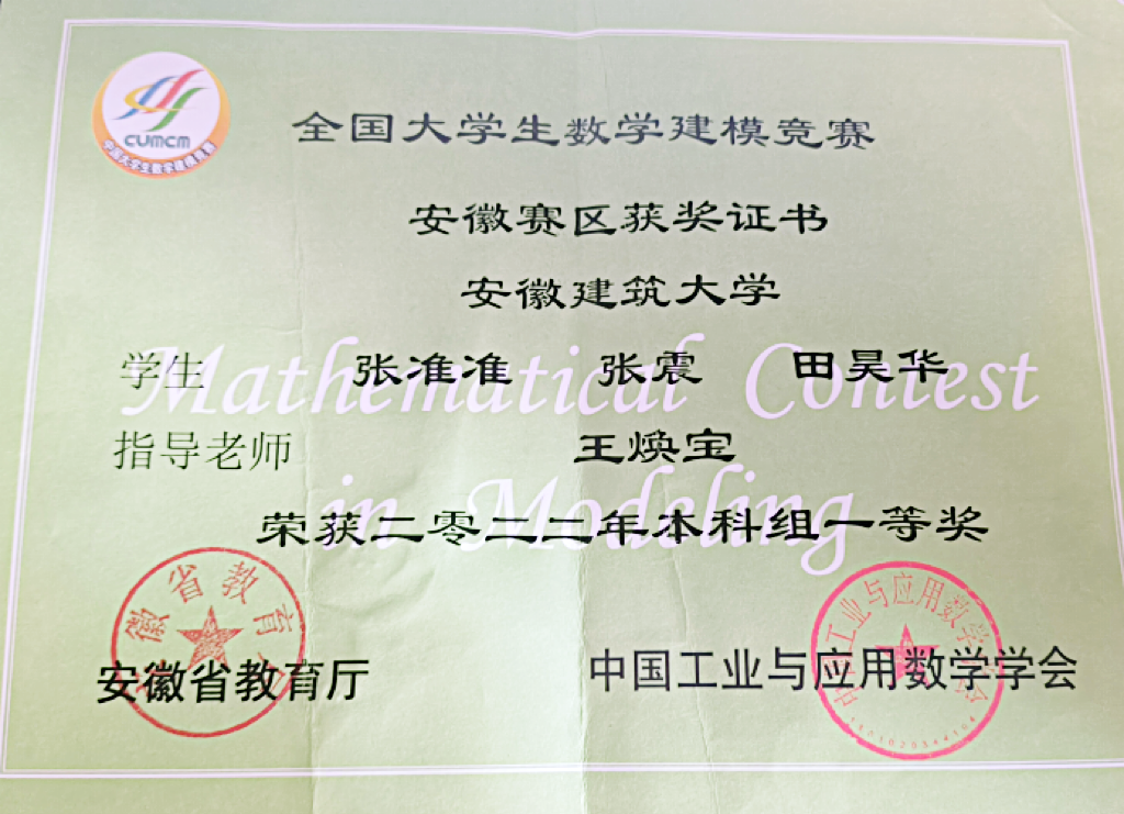 书山有路勤为径,学海无崖苦做舟。对于张准准而言,学习之路并不是一帆风顺的,由于英语基础相对较差,每天都要花大量精力复习英语,“大学四年我最大的遗憾就是没能通过英语六级,但我相信只要我坚持下去,研究生期间肯定能考过。”每每在遇到瓶颈期的时候,张准准不但没有放低对学习的要求,反而不断告诉自己要稳住心态,坚持学习。与此同时,他还积极投身实验室,参加各类学术科技竞赛,在校期间,荣获全国数学建模竞赛安徽省一等奖、全球数学建模竞赛二等奖、华旗-通源杯安徽省生态环境创新创业大赛特等奖,与团队一起发明专利一项、发表中文核心期刊论文一篇,多次荣获国家励志奖学金、学业奖学金等。