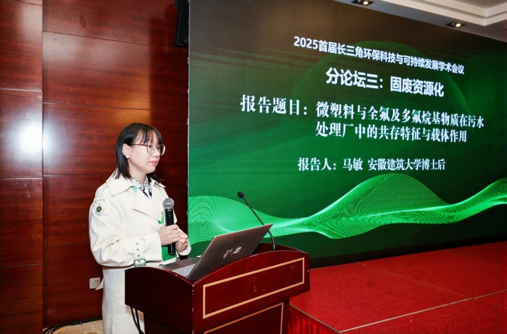 黄显怀教授在水污染治理分论坛作“重大水环境污染风险识别、预警与防控技术研究与示范” 专题报告;安徽建筑大学与安徽工程大学联合主持了“固废资源化”分论坛,博士后马敏就“微塑料与全氟及多氟烷基物质在污水处理厂中的共存特征与载体作用” 进行学术交流,此次会议是学校全面贯彻落实习近平生态文明思想、推动长三角一体化绿色高质量发展主办的重要学术活动之一,为区域环保科技协同创新与可持续发展搭建了高水平交流平台。(作者:侯晓云 一审:侯晓云 二审:黄健 三审:谢发之)