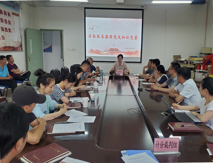 为庆祝中国共产党百年华诞,回顾党的光辉历程,营造学党史、知党情、跟党走的浓厚氛围,进一步丰富党史学习教育内容。7月7日,后勤服务集团党总支在后勤综合楼会议室开展“学史明理、学史增信、学史崇德、学史力行”——庆祝建党100周年党史知识竞赛活动,全体党员参加活动。