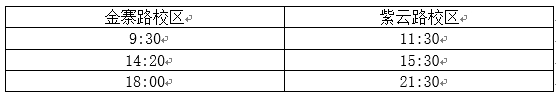 4.取消乘车人数较少的两班学校交通车,分别是:17:55金寨路校区发往紫云路校区及21:30紫云路校区发往金寨路校区的班次。