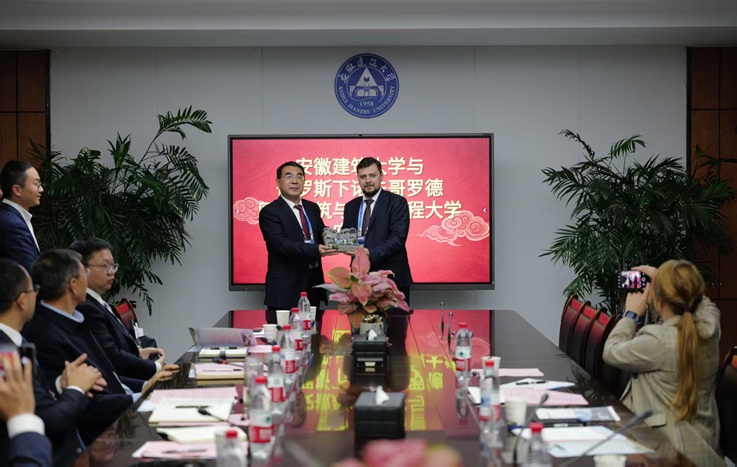 谢戈列夫・德米特里校长对我校的热情接待表示感谢,高度评价了我校在土木建筑教育、徽派建筑研究等领域的突出成就。他表示,两校多年来的合作根基深厚、成果显著,充分体现了中俄高校在教育理念、学术研究上的高度契合。俄方高校将一如既往地重视与安徽建筑大学的合作,积极响应双方提出的合作愿景,推动师生互访、科研联合、人才共育等方面的合作向更深层次、更广领域发展,共同为中俄教育文化交流搭建坚实桥梁。他对我校提出的相关合作方案高度认可,认为这些举措兼具实操性与前瞻性,既整合了双方核心优势资源,又聚焦了人才培养与科研创新的关键需求,俄方将尽快组织相关院系与部门对接。