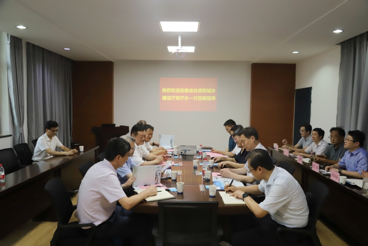 本网讯 6月27日,安徽省住房与城乡建设厅党组书记、厅长贺懋燮一行来安徽建筑大学对安徽省建设领域碳达峰碳中和战略研究院进行专题调研并指导工作,厅党组成员、副厅长方廷勇,二级巡视员张启兵,标准定额处处长尹宗军,工程质量安全监管处处长何以文,建筑节能与科技处处长陈必喜、四级调研员朱力陪同调研。校党委副书记、校长黄显怀出席座谈会会议。会议由校督导员、安徽省建设领域碳达峰碳中和战略研究院院长、智能建筑与建筑节能安徽省重点实验室主任方潜生主持,校节能研究院、科技处相关负责同志以及安徽省建设领域碳达峰碳中和战略研究院技术骨干参加了会议。
