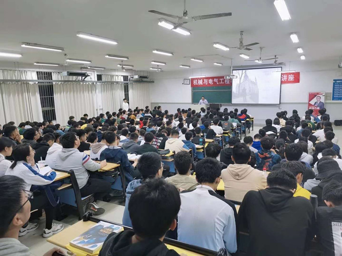 本网讯 10月26日,机电学院在2103教室举办“相信自己不平凡”公益励志讲座。学院邀请95级校友合肥环球教育学校校长、美国西北大学招生面试官、安徽建筑大学优秀校友余锦华博士给300名新生开展励志讲座。