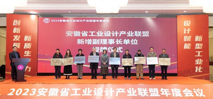 年会上,安徽省工业设计产业联盟秘书长单位负责人、安徽经济报副总编辑(主持工作)栗亮隆重发布“2023安徽省工业设计十大新闻”,其中之一为“2023年联盟推动创新探索产教融合力度空前”。这一新闻重点介绍了联盟理事长单位联宝科技携手安徽建筑大学、合肥工业大学、安徽大学、合肥大学联合授课,联合指导共同完成的“一企四校”联合设计课程,并高度肯定了联宝科技与机电学院共建“前沿技术与设计创新工作室”、积极推进联合课程做实做强的创新做法。这一新闻充分体现出我院参与产教融合、校企协同育人等方面的创新探索与合作取得了一定的成效,引起了与会产业界和教育界的广泛共鸣。