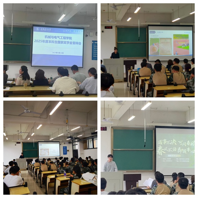 为充分发挥优秀学生的榜样引领作用,弘扬奋发向上的学风和院风,激励新生积极进取,9月18日下午,机电学院组织新生观摩2025年度国家奖学金答辩会。