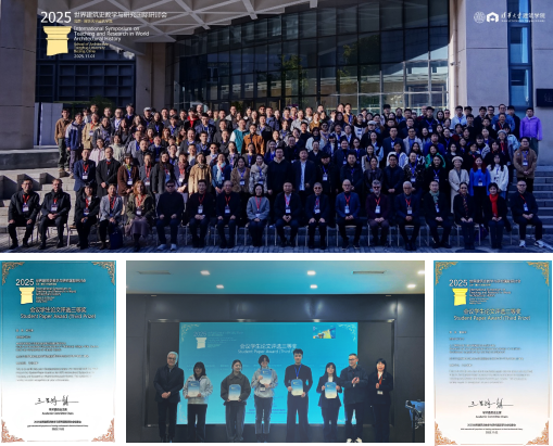 本网讯 近日,我校地域人居环境与空间智慧感知科研创新团队学生参加2025世界建筑史教学与研究国际研讨会(2025 International Symposium on Teaching and Research in World Architectural History)作专题汇报并获得两项学生会议论文奖。该国际学术会议由教育部高等学校建筑学专业教学指导分委员会与清华大学建筑学院联合主办,众多国内外建筑领域的学者、教师及学生代表参会交流。参会单位涵盖同济大学、东南大学、耶鲁大学等国际知名高校。组委会特别邀请中国科学院院士常青、中国工程院院士庄惟敏出席会议并作专题发言,为参会者带来前沿学术观点。